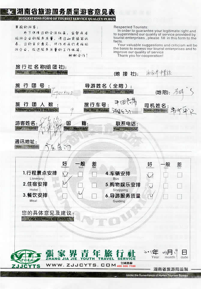廣東東莞“白先生”與張家界青旅旅游顧問——客服經(jīng)理“張德建”先生在7月31取得聯(lián)系,就合理選擇旅游線路景點、旅游過程的具體要求、服務(wù)范圍,與此次旅游活動聯(lián)系人白先生做了多次在線溝通和電話溝通,經(jīng)過細致的商磋,最終在08月07日雙方簽訂了《國內(nèi)旅游組團接待合同》,正式確立由我社負責全程接待安排;白先生一行9人(3人滿70歲老人、3位初中學(xué)生、3位成年人),于08月15日下午中午12點許抵達長沙,我社安排導(dǎo)游和司機在長沙高鐵南二環(huán)接站,搭乘我司安排的商務(wù)車,于當日下午17點許抵達張家界市,次日便開始了為期4天行程的走進魅力湘西之旅。 08月16日上午游覽鳳凰古城后,中午啟程自鳳凰返程赴長沙,歡送貴賓搭乘高鐵返程回廣州